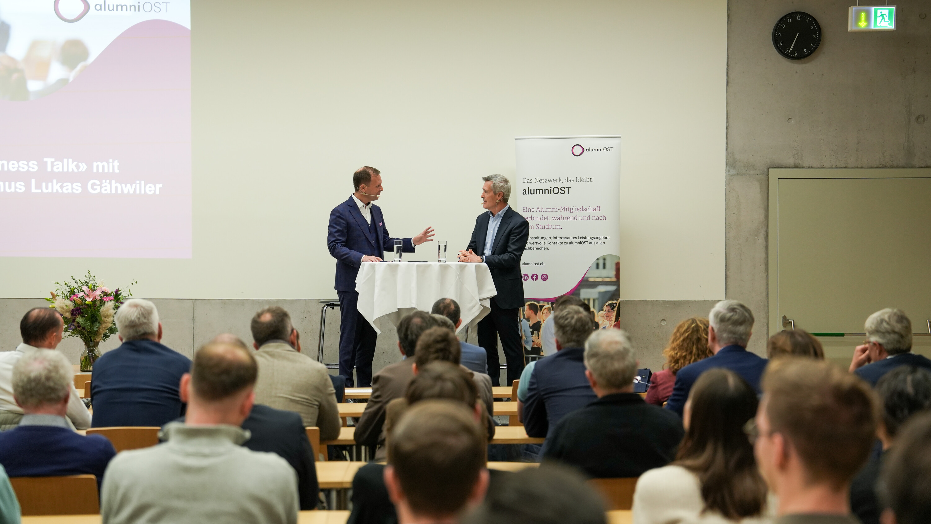 Der erste «alumniOST Business Talk» mit Lukas Gähwiler, Vizepräsident des Verwaltungsrats der UBS – einem bekannten Alumnus, der Wirtschaft und Gesellschaft seit Jahren prägt, war ein voller Erfolg. Ernesto Turnes und Pascal Egloff vom Institut für Finance und Law (IFL) der Ostschweizer Fachhochschule führten in das Thema «Bankenplatz Schweiz» ein und gaben Einblick in aktuelle Entwicklungen des Schweizer Banken- und Finanzplatzes. Moderiert wurde der Talk von Alumnus Christoph Lanter.